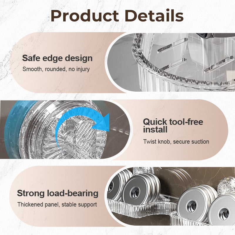 EINFACHE WERKZEUGLOSE INSTALLATION: Drehen Sie einfach den Knopf und ziehen Sie ihn fest, um den Saugnapf fest zu befestigen. Das Vakuumhaftungsdesign sorgt für eine starke Stabilität, ohne Wände oder Oberflächen zu beschädigen. Mehrere fein polierte Kanten machen die Handhabung sicher und vermeiden Kratzer oder Handverletzungen.